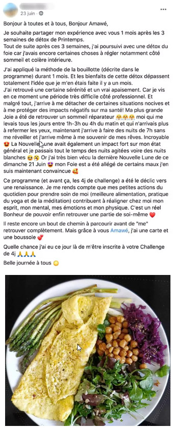 Je voulais vous faire part de ma très belle expérience avec Amawé grâce à laquelle je me suis délestée de 10 kilos depuis le mois d’Avril ! J’ai commencé par faire la détox de printemps, j’ai continué ensuite dans le même esprit en refaisant les recettes, puis j’ai fait la détox d’été et là je me suis lancée avec le club supersouper en Juin !