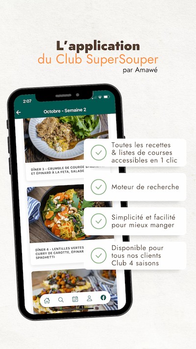 Cette app est réservée aux clients Amawé membres du Club SuperSouper 4 saisons (elle n’est pas accessible pour les membres 1 saison).
