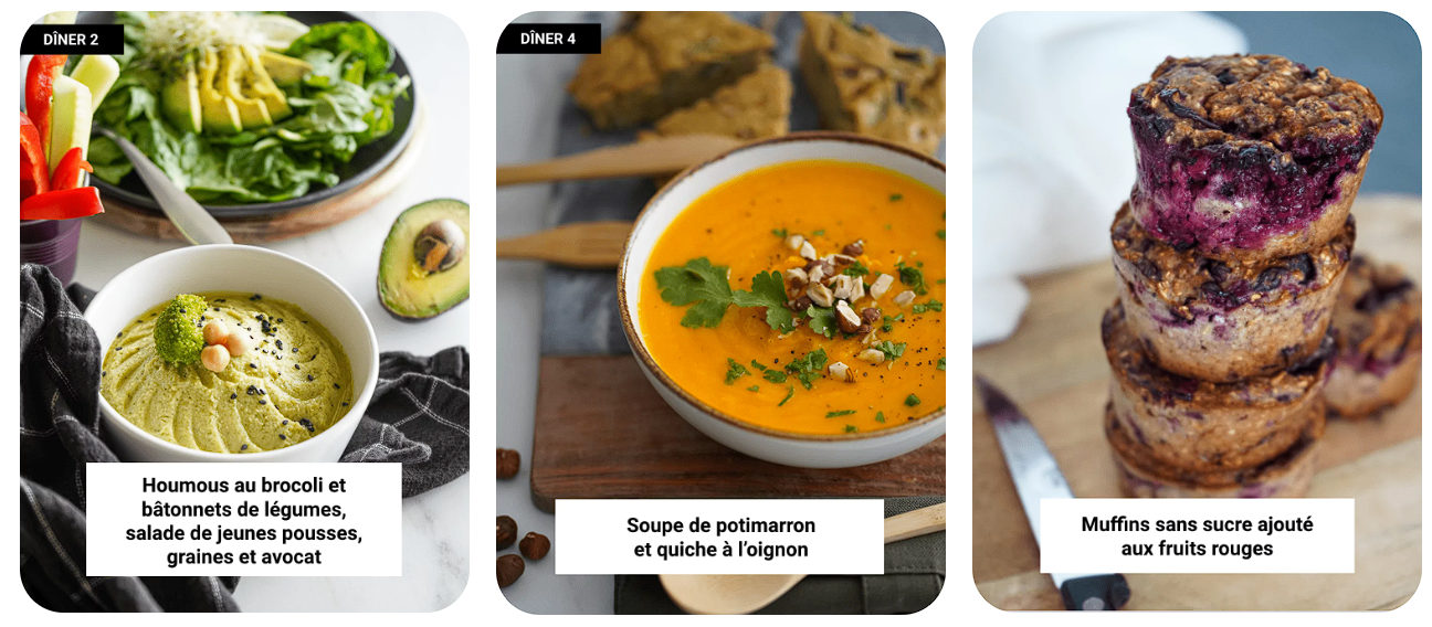 Chaque semaine : les recettes de tes 5 dîners, planifiés pour toi (et ta famille), optimisés pour le zéro gaspi et ce dont ton corps a besoin